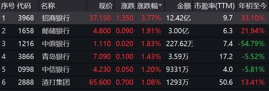 新浪港股讯 9月26日消息,内银股集体爆发,招商银行(37.1, 1.30,3.63%)大涨3.77%,邮储银行(4.79, 0.08, 1.70%)大涨1.9%,中原银行(1.15, 0.06, 5.51%)涨1.83%,青岛银行(7.09, 0.10, 1.43%)涨1.43%。
