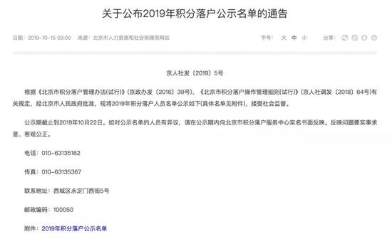 10月15日,北京市人力资源和社会保障局发布消息,北京市2019年积分落户申报审核工作已全部结束,自10月15日起进入公示及落户办理阶段。