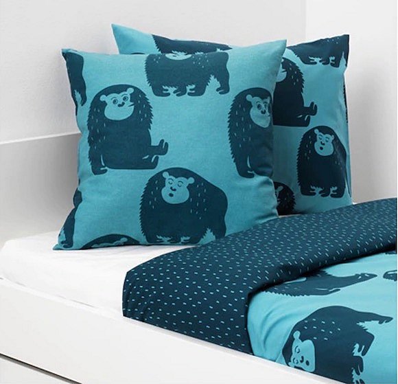 搜索宜家中国官网可以看到,这款蓝色印有动物图案的方形靠垫售价为59元。