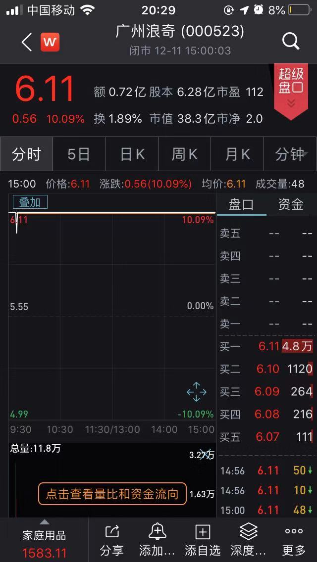 因拟向广州土地开发中心交储一块市区地块,日化企业广州浪奇股价12月11日应声涨停。
