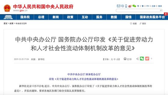 《关于促进劳动力和人才社会性流动体制机制改革的意见》发布 |