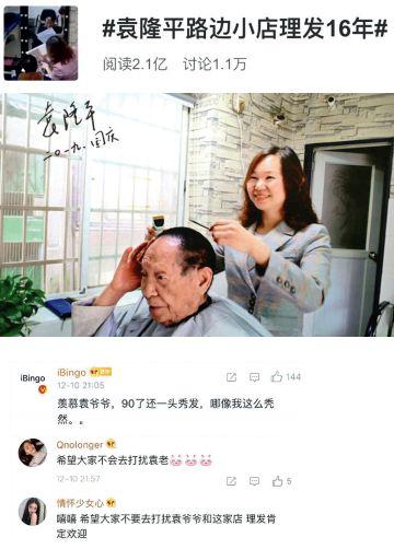 上热搜的原因五花八门,有一次是因为他录指纹时告诉民警自己手上有10个螺纹,有一次是他在国际会议上用英语致辞,有一次是他(虚岁)九十大寿的蛋糕上插了稻穗,有一次是北京协和医院找到了他的出生档案……最近一次则是媒体发现他常年在一家不起眼的小店理发,“袁隆平路边小店理发16年”的微博话题一天内达到2.1亿阅读量。总而言之,只要你看手机,三天两头就会看见袁隆平的消息又“刷屏”了。
