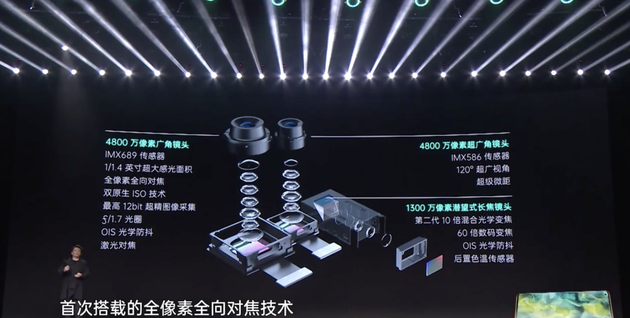 拍照方面,OPPO Find X2 Pro后置三摄分别为4800万主摄+4800万超广角+1300万潜望式长焦镜头。主摄使用了首次亮相的索尼IMX689传感器,超广角镜头用的去年旗舰级传感器—索尼IMX586,长焦镜头支持10倍混合光学变焦,最高60倍数码变焦,三颗摄像头联动,可以实现 17-170mm 焦段的覆盖。前置摄像头为3200万的IMX616镜头。