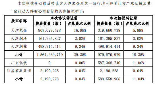 受让方广东弘敏,则是红星家具集团旗下全资子公司,实际控制人为车建兴、车建芳。