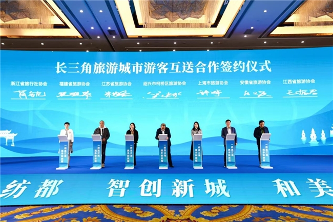 活动期间,来自长三角的百家重点旅行商与新媒体代表齐聚柯桥,通过签约、研讨与实地考察,进一步凝聚区域合作共识。在签约环节,柯桥与上海、江苏等多地共同签署游客互送协议,并启动长三角旅游城市合作机制。各方将围绕文旅产品开发、线路共推、多层次合作等方面深化联动,整合区域资源,激发消费新活力。