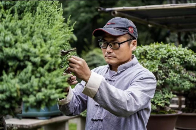 盆景师傅们正手握修枝剪,为这些“活着的文物”进行春季修剪与翻盆。只见他们目光如炬,精准地剪去干枯枝、交叉枝与徒长枝,每一刀都利落果断。这看似简单的修剪,实则蕴含着苏派盆景“粗扎细剪”的核心技艺,不仅是为了塑形,更是为了疏朗枝叶,让植株在接下来的生长季里蓄势待发。