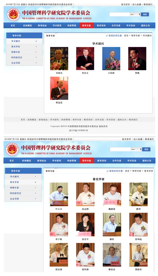 图四:中管院学术委员官方网站的智库专家纪录显示受聘(部份)著名学者名单的截图