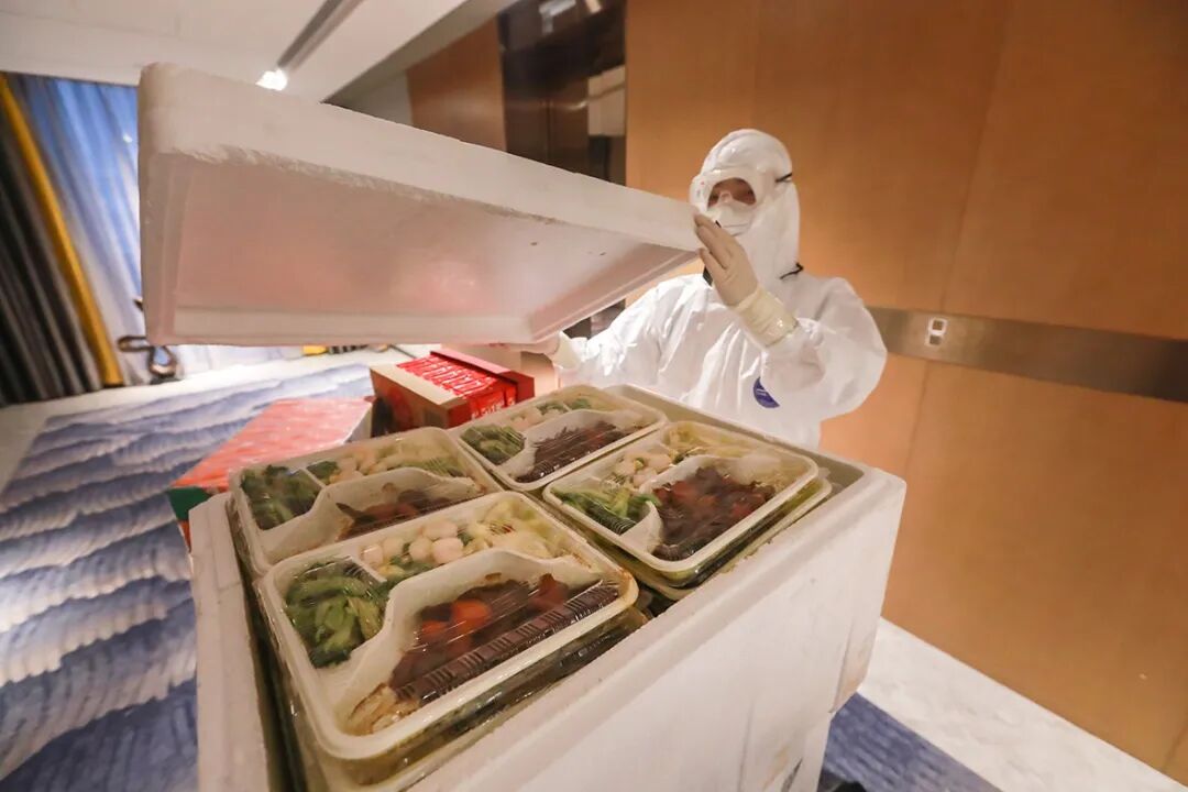 潘红芬又敲开了一名韩国男士的房门。这名韩国人已经隔离了10天了,“我再住4天就能出去了。”他告诉记者,他在浙江海宁做生意,“住在这儿挺好的。之前我需要刮胡刀,他们很快给我送来了。”