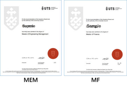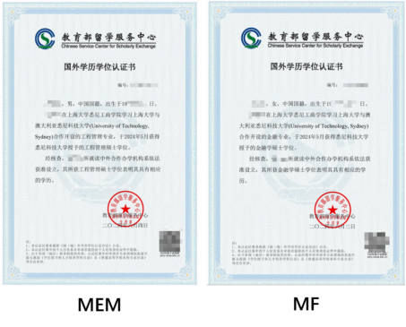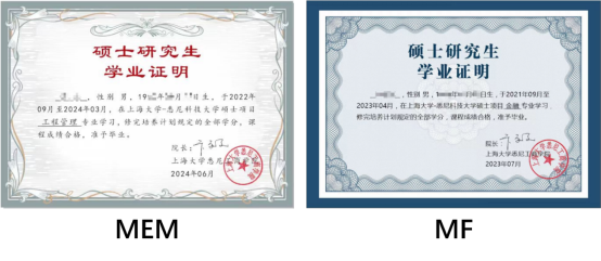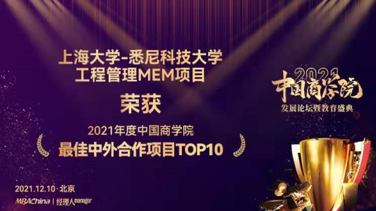 上海大学和澳大利亚悉尼科技大学合作建设的硕士项目于2015年获得中国教育部批准(许可证编号:MOE31AUA02DNR19940091O),于2016年开始正式招生。学生毕业可获得悉尼科技大学工程管理硕士(MEM)学位或金融硕士(MF)学位,并获得教育部留服中心学历认证。