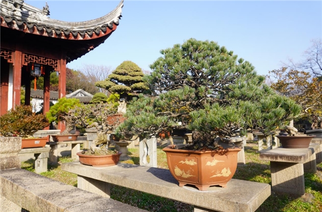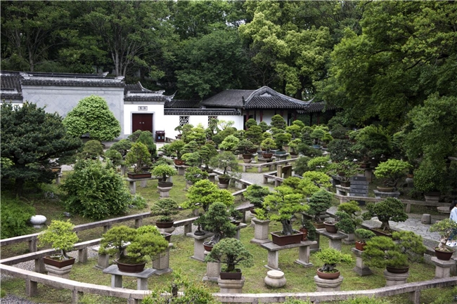 漫步于万景山庄,仿佛步入一个微缩的江南天地。园内收藏和展示的300余盆精品,涵盖了松、柏、榆、梅等各类树种。这些盆景,或苍劲雄奇,或潇洒清秀,无一不体现着苏派盆景“粗扎细剪”的核心技艺——通过金属丝的蟠扎勾勒出树木的骨架与神韵,再辅以精心的修剪,让每一片枝叶都呈现出自然生长的姿态,达到“虽由人作,宛自天开”的艺术境界。